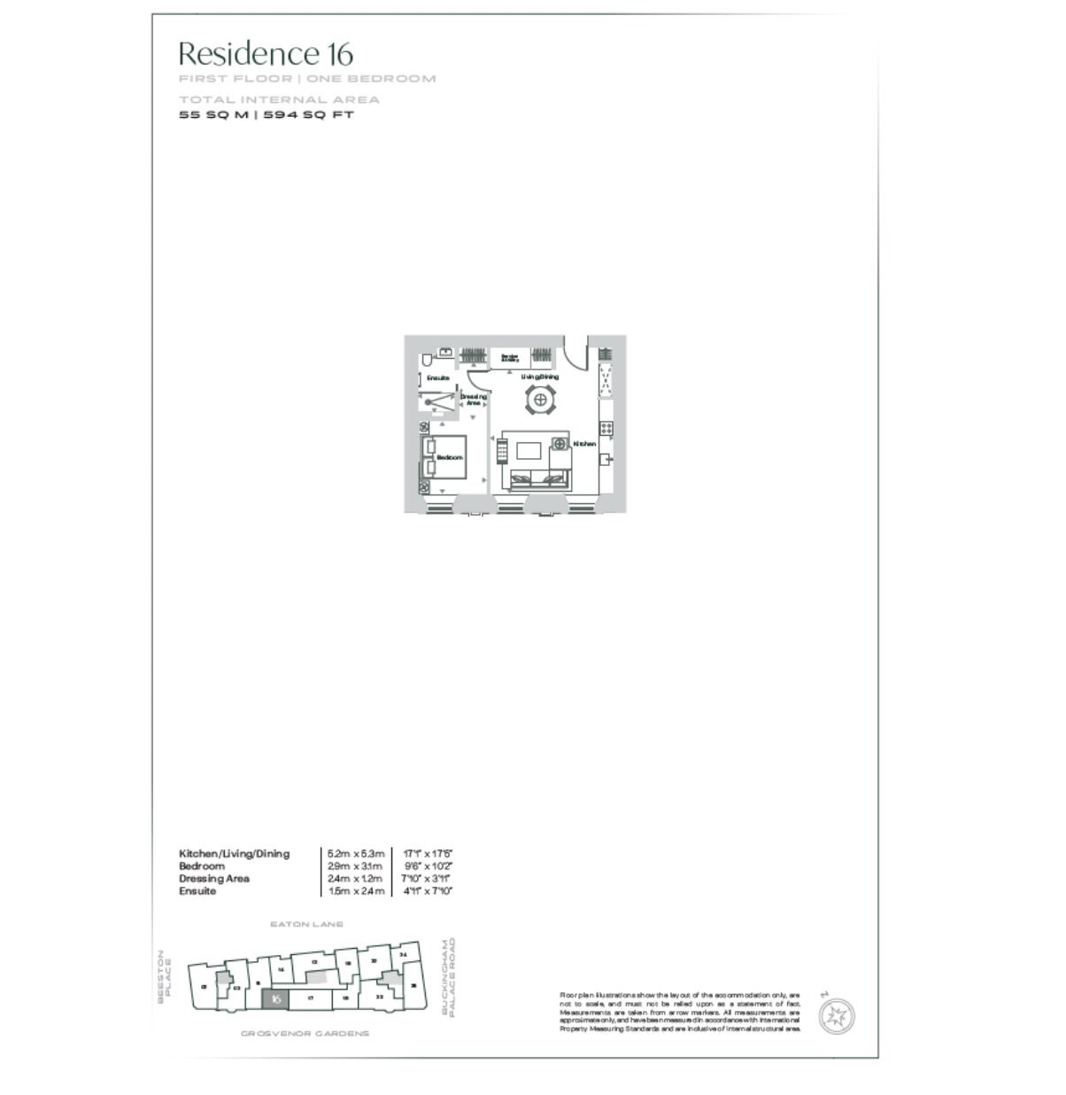 This elegant 1 bedroom apartment is set within the prestigious 8 Eaton Lane development in London SW1W, located in the heart of Belgravia overlooking Grosvenor Gardens. Spanning approximately 594 sq ft, the layout is thoughtfully designed to maximise both space and natural light, featuring a refined open-plan living and dining area complemented by a bespoke kitchen with high-quality finishes. The bedroom is generously proportioned, enhanced by classic detailing and large arched windows that reflect the building’s heritage character. The apartment combines period elegance with contemporary design, offering a seamless living environment supported by luxury amenities including concierge service, spa facilities, and a private residents’ pool, making it an exceptional residence in one of Central London’s most distinguished neighbourhoods.