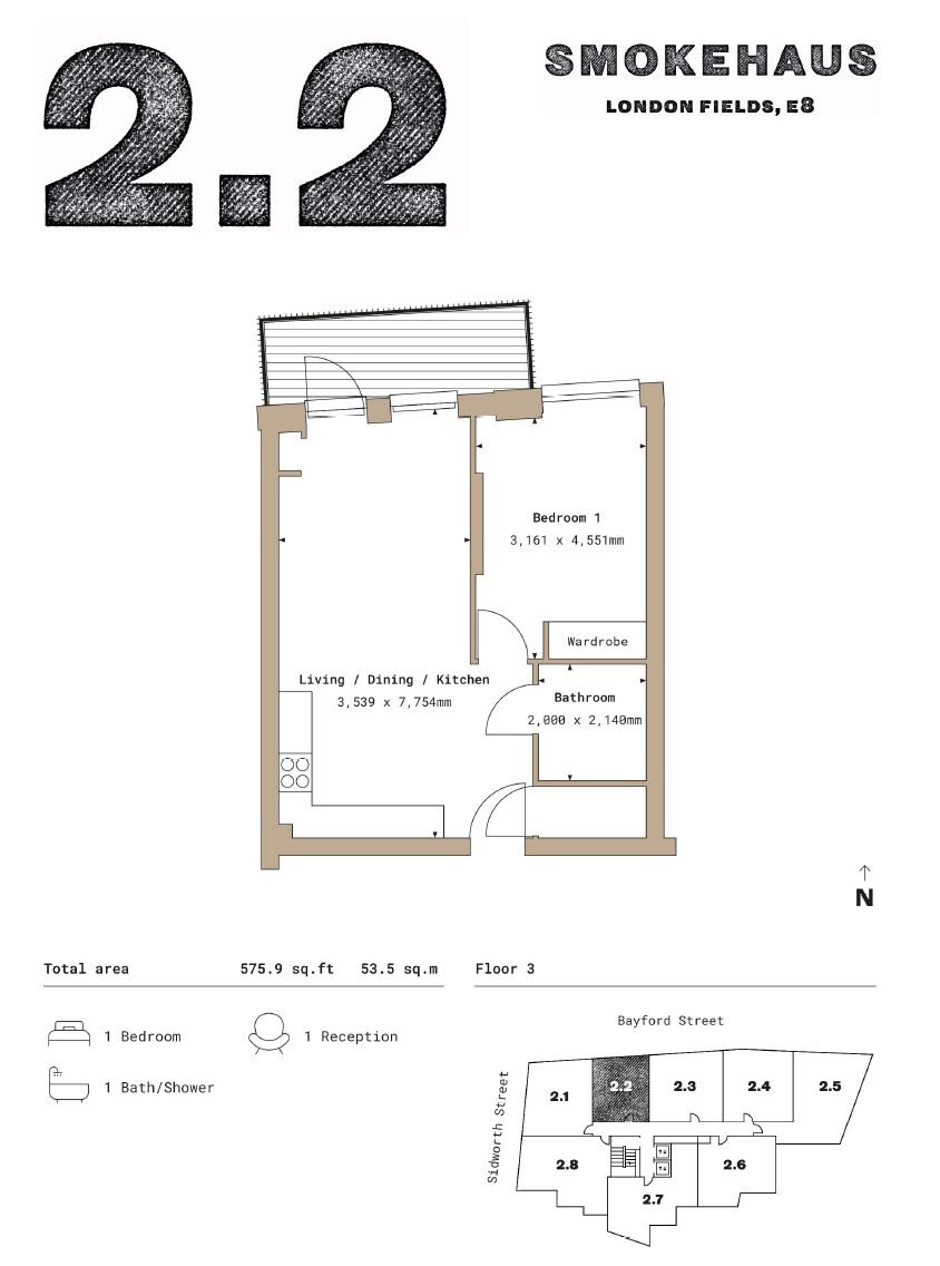 This thoughtfully arranged one-bedroom apartment offers approximately 576 sq ft of well-balanced internal space, designed to deliver both comfort and practicality within a modern London setting. The layout centres around a bright open-plan living and dining area, creating a natural sense of flow and openness that makes the space feel both inviting and highly functional.The bedroom is positioned to provide privacy and a calm atmosphere, separated from the main living area while still maintaining an efficient overall layout. The bathroom is conveniently located and finished in a clean, contemporary style, complementing the apartment’s overall design language. Every element has been carefully considered to ensure ease of living, making the space equally suited for day-to-day comfort or long-term investment.