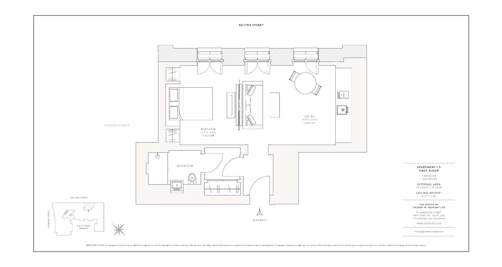 This elegant one-bedroom apartment is situated within 60 Curzon in London Mayfair, one of the city’s most prestigious residential addresses. Offering approximately 570 sq ft of refined lateral living, the layout has been thoughtfully designed to maximise space, light, and functionality. The open-plan reception and kitchen area forms the heart of the home, enhanced by impressive 2.7-metre ceiling heights that create a strong sense of volume and sophistication. The bedroom provides a calm and well-proportioned retreat, complemented by a beautifully finished bathroom and integrated storage throughout. Residents benefit from access to exceptional lifestyle amenities including a private spa, swimming pool, wellness facilities, landscaped courtyard garden, and exclusive residents’ lounge, alongside 24-hour concierge and security services. This residence presents a rare opportunity to experience contemporary luxury living in the heart of Mayfair, surrounded by world-class dining, shopping, and cultural landmarks.