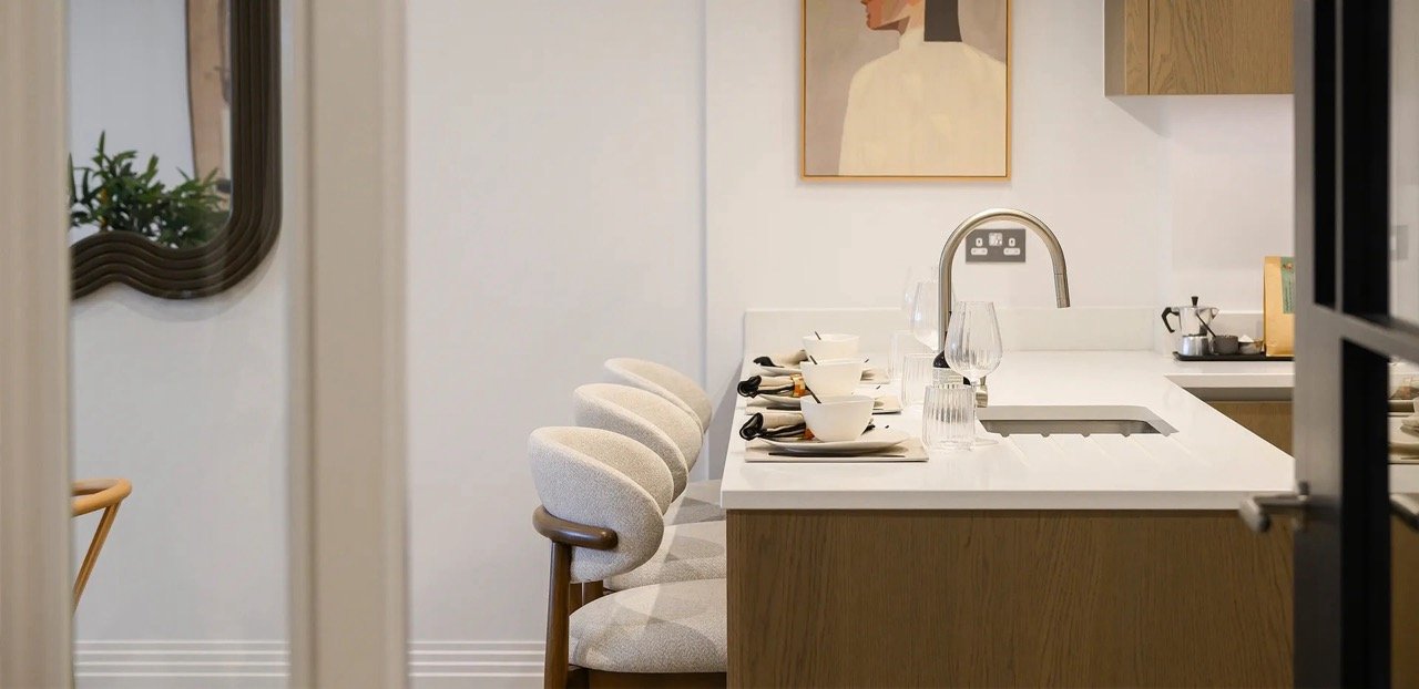 This beautifully designed apartment features a light-filled open plan living, dining and kitchen area, with large windows and bifold doors opening onto a generous private terrace. The seamless indoor-outdoor flow creates an ideal space for both relaxing and entertaining, all while enjoying views across the surrounding parkland.