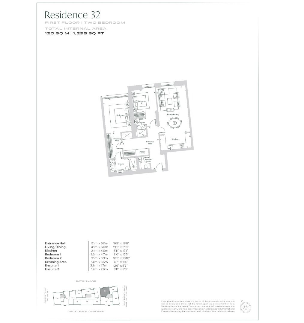 This beautifully crafted 2 bedroom apartment is located within the prestigious 8 Eaton Lane development in London SW1W, set in the heart of Belgravia overlooking Grosvenor Gardens. Spanning approximately 1,295 sq ft, the layout offers a perfect balance of classic elegance and modern living, featuring a spacious open-plan reception area complemented by high ceilings and magnificent arched French windows that flood the space with natural light. The bespoke kitchen is finished to a high specification, seamlessly integrated into the living space, while both bedrooms are generously proportioned with refined detailing and contemporary en-suite bathrooms. The overall design reflects the building’s historic character, enhanced by premium materials and meticulous craftsmanship, delivering a sophisticated living environment supported by world-class amenities including concierge service, spa facilities, and valet parking.