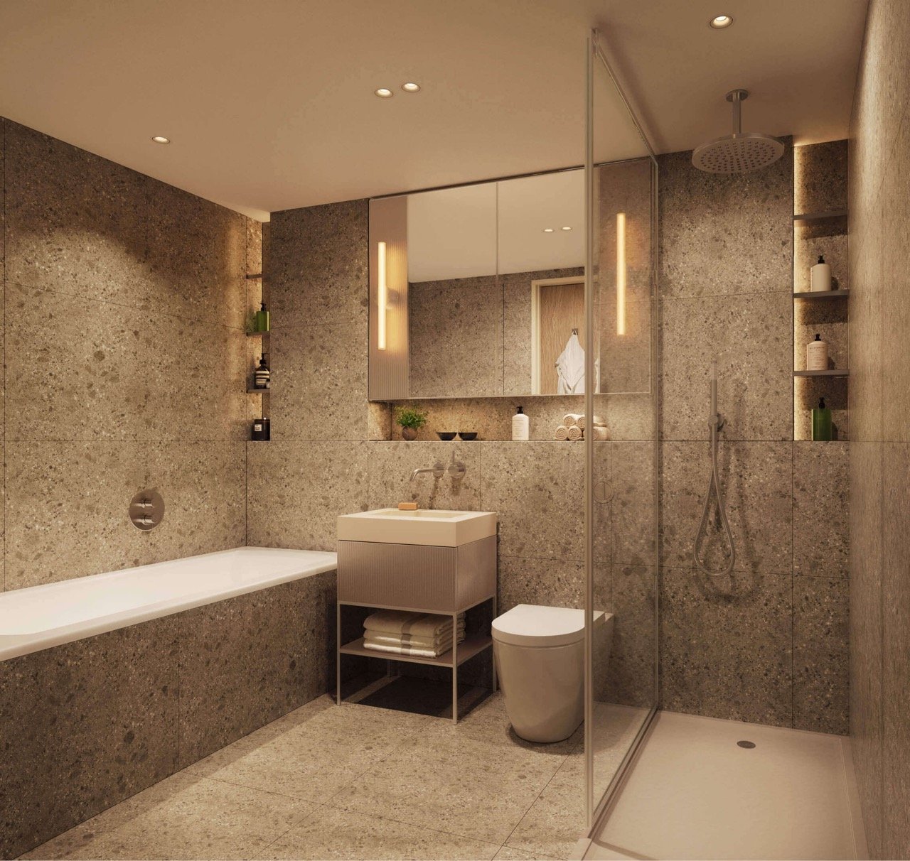 The two-bedroom layouts provide excellent flexibility, ideal for professionals, sharers or small families. Bedrooms are generously proportioned to ensure privacy and comfort, while bathrooms are finished to a high specification with contemporary fittings and elegant detailing. The overall design reflects a balance between luxury and practicality, tailored for modern London living.