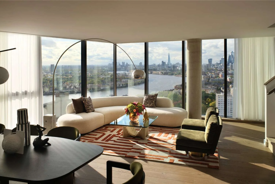 Arranged over two levels and extending to approximately 1,530 sq ft, the penthouse provides a strong sense of space and separation, making it ideal for both comfortable living and entertaining. The layout has been carefully designed to maximise natural light, with full-height glazing surrounding the living areas and framing uninterrupted views in multiple directions.