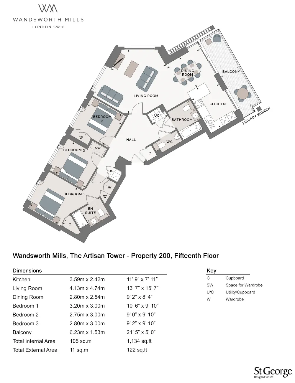 3 bedroom apartments for sale Wandsworth London at Wandsworth Mills offer a rare opportunity to secure a spacious modern home in one of South West London’s most desirable and well connected areas. These apartments are designed for comfortable city living, combining generous layouts, high quality finishes and bright interiors.