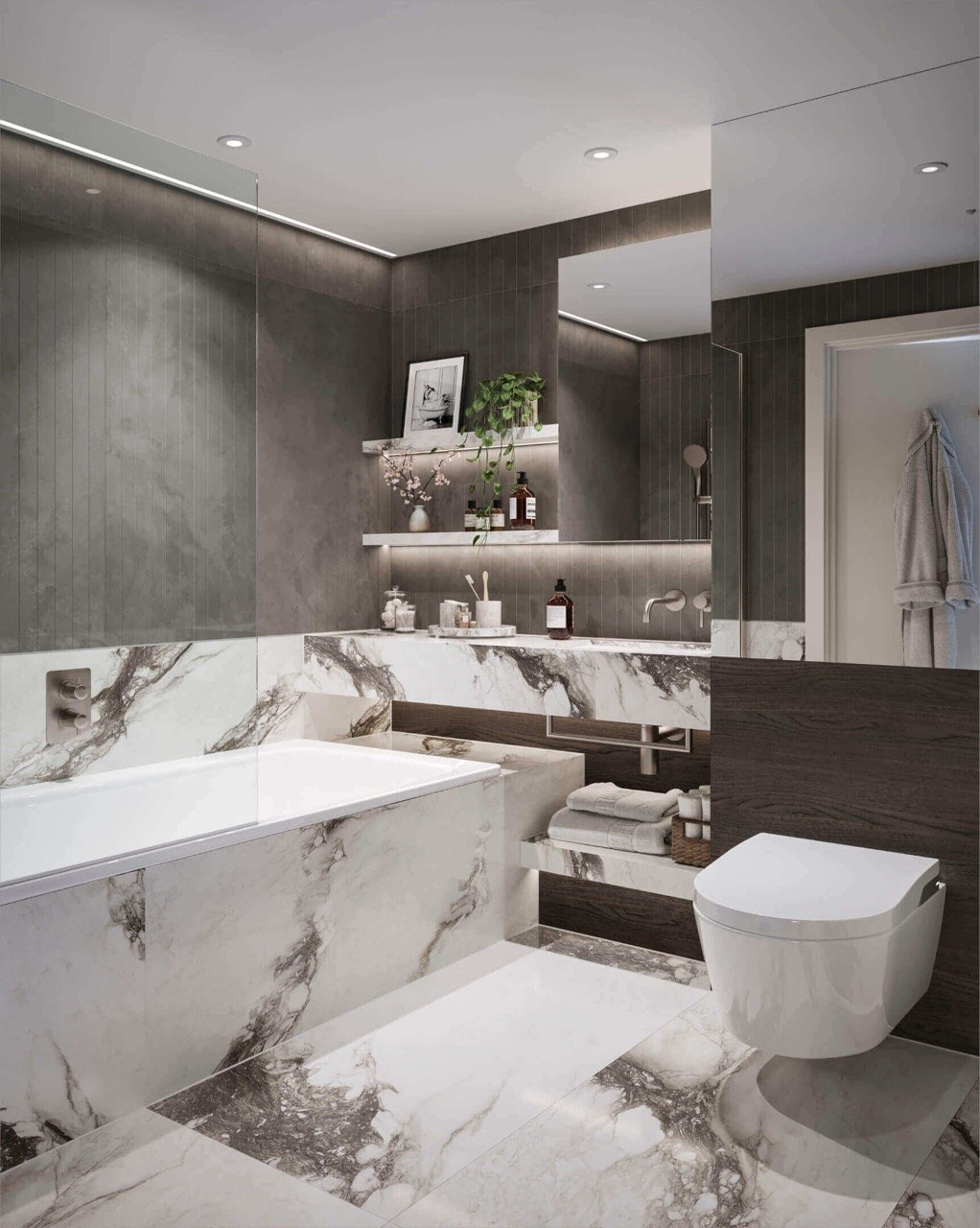 The three-bedroom layouts provide exceptional versatility, perfectly suited for families, professionals or investors targeting high rental demand. Bedrooms are generously proportioned, offering comfort and privacy, while the bathrooms are finished with modern fittings and high quality materials, creating a luxurious yet functional environment throughout the home. Selected units benefit from elevated views across landscaped gardens or the London skyline, enhancing the overall living experience.