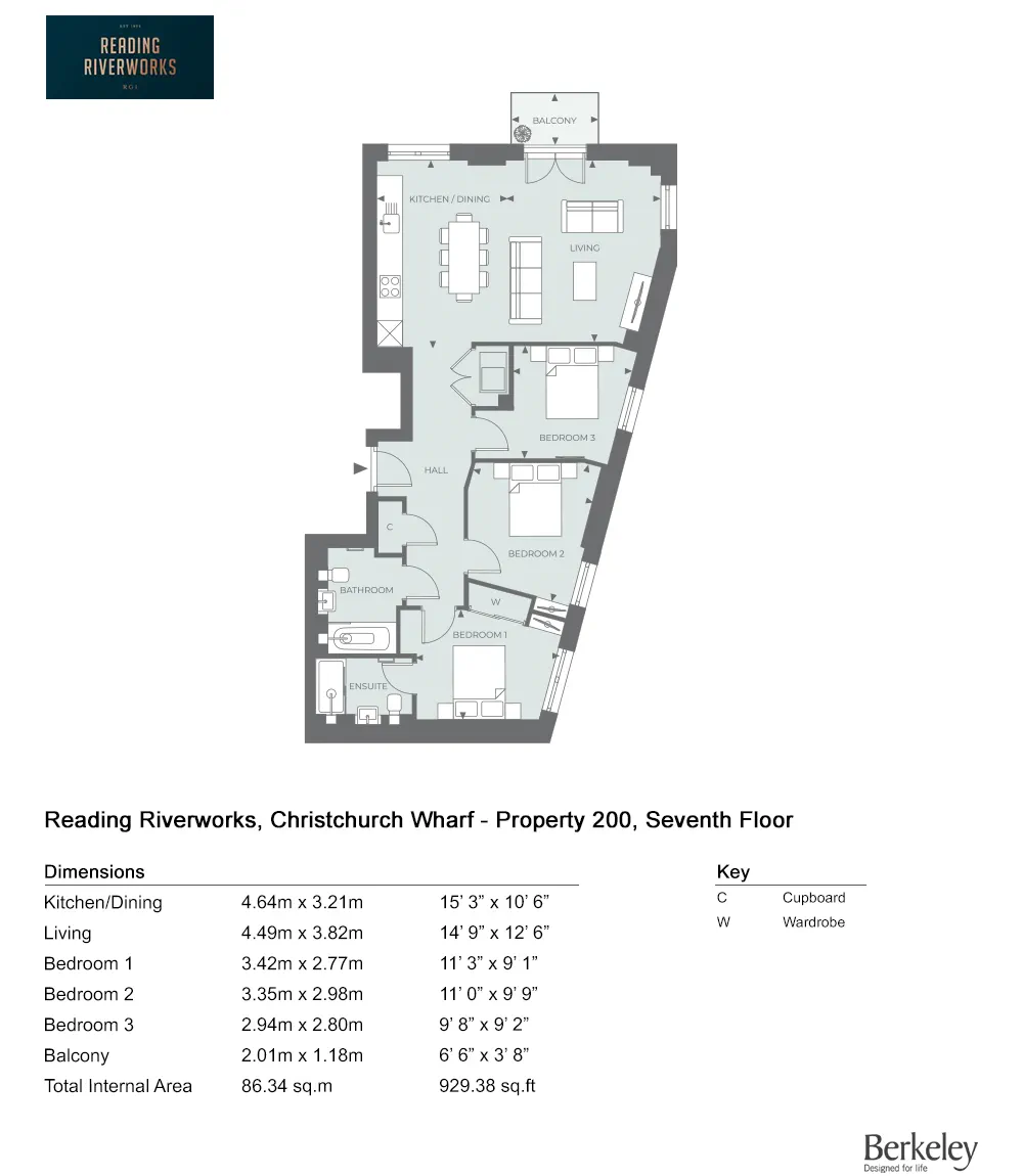 This impressive 3 bedroom apartment for sale in Reading Riverworks offers generous internal space combined with a modern open-plan layout, ideal for families, professionals or investors seeking a larger property in a well-connected location. The living and dining area is bright and spacious, seamlessly linked to a contemporary kitchen featuring integrated appliances and high-quality finishes.