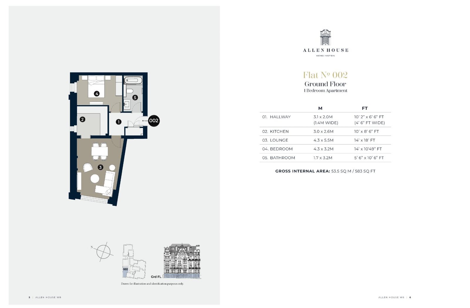 This beautifully crafted ground floor one-bedroom residence is located within Allen House in London, offering approximately 583 sq ft of refined internal space. The layout is thoughtfully arranged around a bright open-plan living and dining area, enhanced by a desirable west-facing aspect that allows natural light to flow throughout the apartment. The contemporary kitchen is seamlessly integrated into the space, finished with high-quality materials and designed to complement the building’s period character.The bedroom is well-proportioned and positioned to provide a sense of privacy and comfort, accompanied by a luxurious bathroom finished with premium fixtures and elegant detailing. The overall layout balances functionality with a calm, sophisticated aesthetic, making it ideal for both personal use and investment. Residents benefit from concierge services, a private gym, and landscaped communal gardens, all within a restored Edwardian building in one of Kensington’s most sought-after locations.